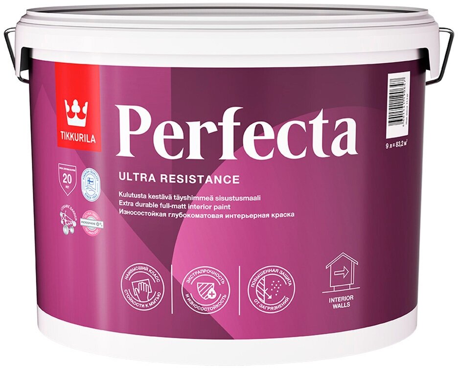 Интерьерная краска Tikkurila Perfecta предназначена для окрашивания стен и потолков в сухих помещениях. Наносится на кирпичные и бетонные поверхности, оштукатуренные и зашпаклеванные основания, гипсокартон, древесные плиты. Подходит для отделки квартир, офисов и коммерческих помещений.