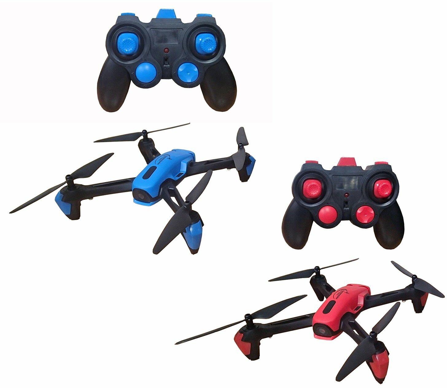 В ассортименте представлен квадрокоптер красно-черного и сине-черного цветов.