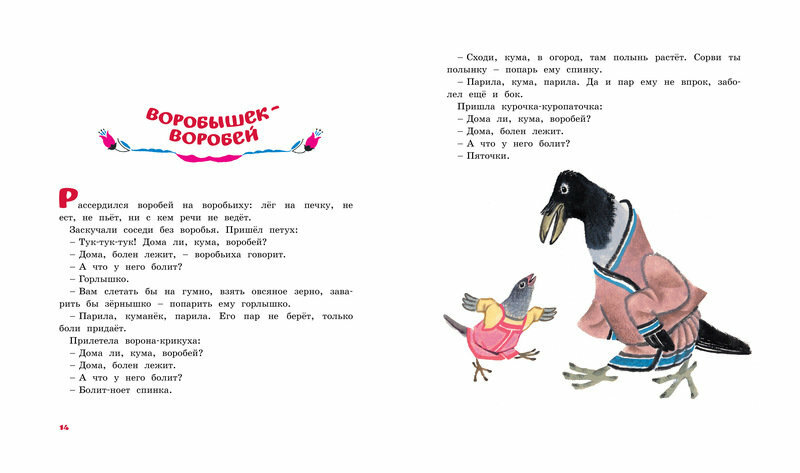 Книга большого формата со шрифтом хорошего размера и крупными, классическими иллюстрациями Евгения Михайловича Рачёва.