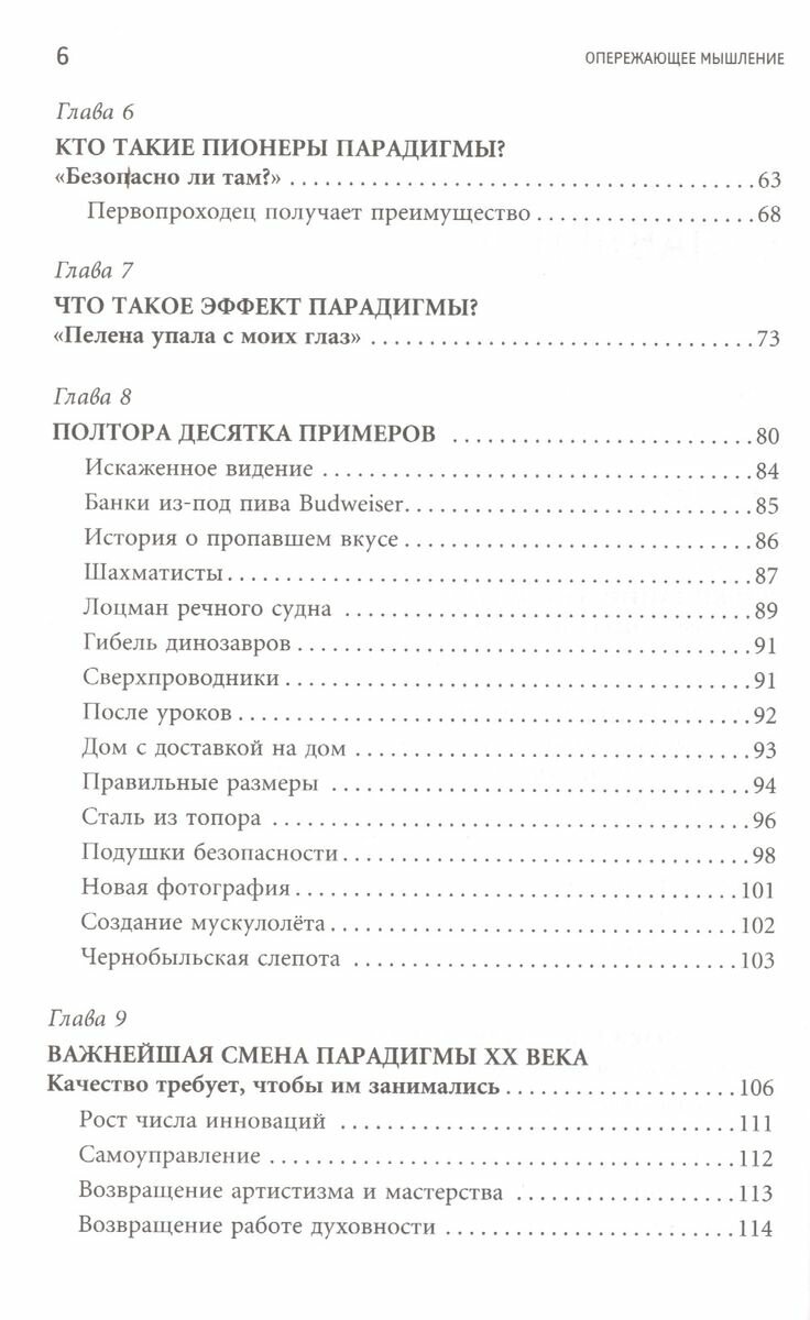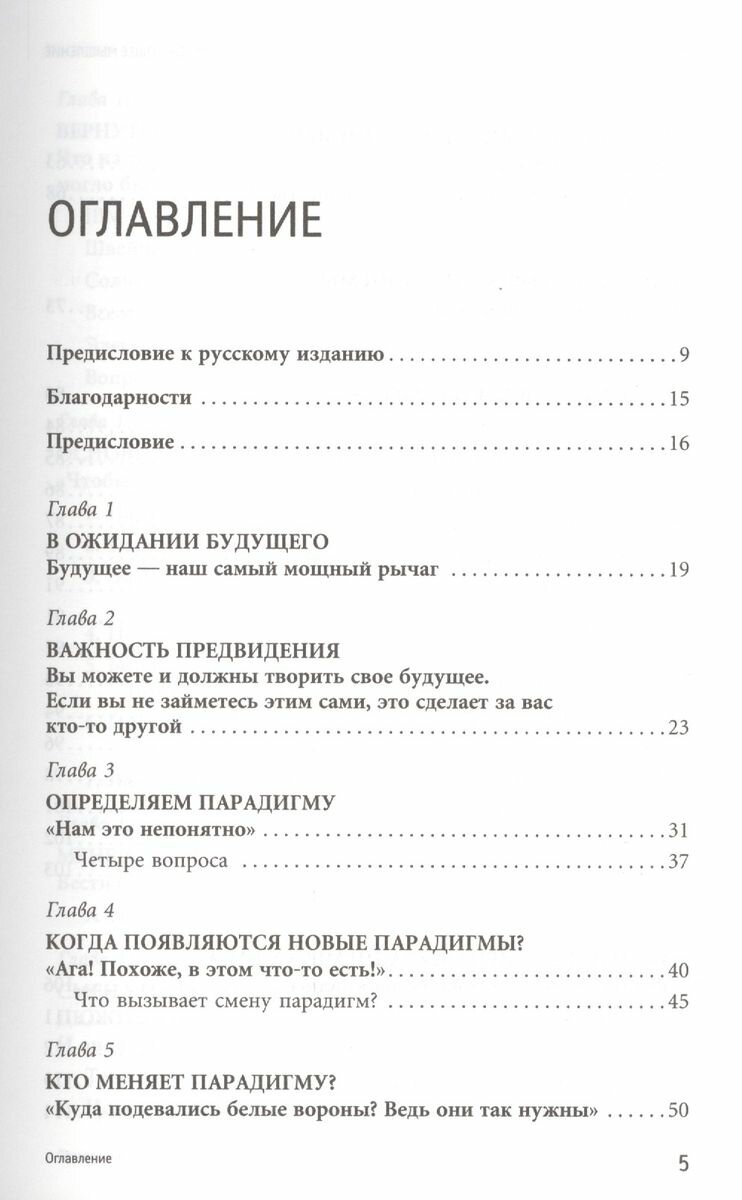 «Опережающее мышление» — это секретное оружие. Я непременно куплю по экземпляру этой книги для каждого из моих клиентов и поставщиков… но ни в коем случае не стану дарить ее конкурентам! Поздравляю, Джоэл Баркер, вы написали книгу, которой суждено совершить переворот в умах. Харви Маккей , автор книги «Как плавать среди акул и не быть съеденным заживо» Книга Дж. Баркера — прекрасное чтение для будущих и уже состоявшихся лидеров. Для всех тех, кто ищет знания, способные усилить личную интеллектуальную мощь, повысить эффективность действий организаций, улучшить жизнь своих близких, людей и страны. Юрий Рубаник , доктор технических наук, директор Центра новых технологий управления Умение формировать будущее, безусловно, — одно из важнейших для современного человека, желающего преуспевать в любой области деятельности. Это только кажется, что понятие конкуренция относится только к бизнесу. В реальной жизни всем нам приходится конкурировать, и три компонента этого процесса, рассматриваемые в книге: предвидение, инновации и совершенство, — действительно являются ключом к успеху. Поэтому «Опережающее мышление» — это книга, которую должен прочитать каждый, кому небезразлично собственное будущее. Сергей Филонович , декан Высшей школы менеджмента Государственного университета — Высшей школы экономики Парадигмы — это система взглядов и представлений, в рамках которых мы воспринимаем окружающий мир и предсказываем его поведение в будущем. Однако мир постоянно меняется и правила, которые хорошо работали в прошлом, могут стать тормозом к развитию. Понимание сути парадигм, умение распознать зарождение новой парадигмы и вовремя найти ей применение — искусство, овладеть которым должен каждый современный человек. Известный футуролог Джоэл Артур Баркер показывает, что концепция парадигм применима не только в науке, но в бизнесе, политике, культуре, а также в обычной жизни. Книга ориентирована на широкую аудиторию.