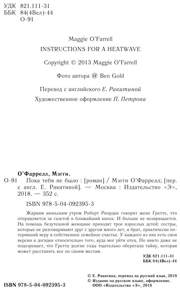 Книга: Пока тебя не было (О'Фаррелл Мэгги); ООО "Издательство "Эксмо", 2018