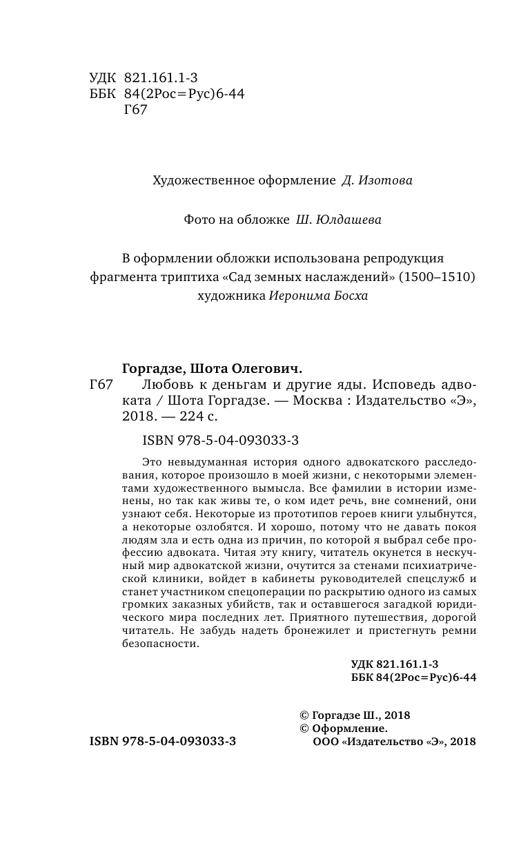 Любовь к деньгам и другие яды. Исповедь адвоката (Горгадзе Шота Олегович); ООО "Издательство "Эксмо", 2018