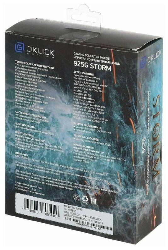 Oklick Игровая компьютерная мышь 925G Storm относится к игровому классу устройств, обладает высоким разрешением сенсора и быстро реагирует на команды пользователя. Подключение осуществляется через порт USB, а кабель длиной 1.5 метра обеспечивает свободу действий. Модель имеет эргономичную форму для пользователей с ведущей правой рукой. Покрытие soft-touch защищает от скольжения и обеспечивает комфортное положение во время игры. В манипуляторе Oklick 925G Storm предусмотрено 6 кнопок и колесико прокрутки для управления курсором. Ресурс максимальной наработки составляет 5 млн кликов. Корпус изготовлен из пластика черного цвета и оснащен яркой подсветкой. Размер: 13х6.7х3.9 см.