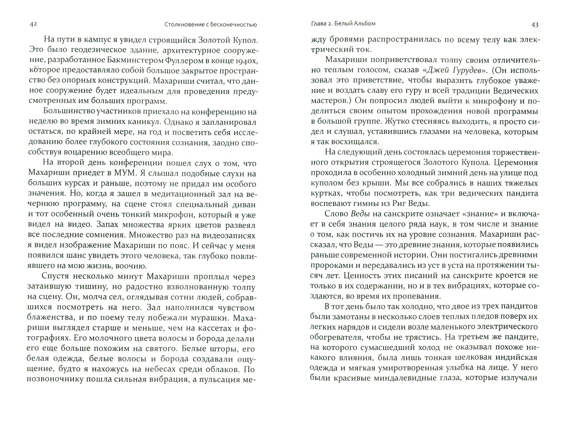 Я давненько не читала такой интересной и не похожей на другие книги. Ни для кого сейчас уже не секрет, что люди в большинстве своем находятся в постоянном поиске "чего-то большего", многие ощущают потребность в Знании, духовном Пути. Уверенность в том, что в жизни есть что-то еще кроме "ходитьнаработуестьспать" побудила меня купить эту книгу, привлекающую фразой "обычный человек в области просветления". В книге описан интересный опыт воспитанника западной культуры, которой чужды различные шаманизмы, медитации, йоги, духовности и уж тем более наличие Гуру. Но для меня этот опыт без купюр явился недостающей частью общего пазла "поиска себя". Уж если в таких обыденных вещах, как танцы, английский, фитнес, кулинария и т.д. мы с радостью обращаемся за помощью к учителям и наставникам, то почему же для нас так странно принять тот факт, что в таком тонком деле как духовное развитие мы сможем обойтись без оного. Это простое осознание успокоило мой ум. Сейчас я приступила к чтению книг Шри Шри Рави Шанкара (того самого Гуру, описанного в книге). Каждое предложение находит во мне отклик и я все больше склоняюсь к тому, что верные истины, созвучные с нашей природой, совершенно простые. Однозначно рекомендую к прочтению!