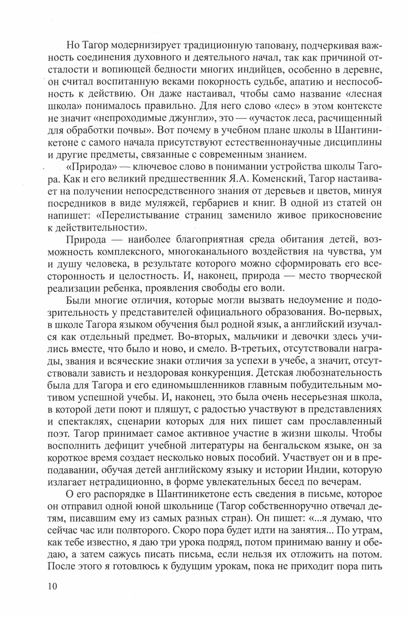 Рабиндранат Тагор (1861-1941) - выдающийся индийский педагог, просветитель, поэт, драматург, композитор, первый в Азии лауреат Нобелевской премии в области литературы. Созданная им частная школа в Бенгалии выросла до знаменитого университета, в котором учились многие участники освободительного движения Индии от английской зависимости. Тагор писал о том, как важно развивать у детей способности к самообразованию, вызывать интерес к учебе, строить отношения учителя и ученика на основе духовной близости.