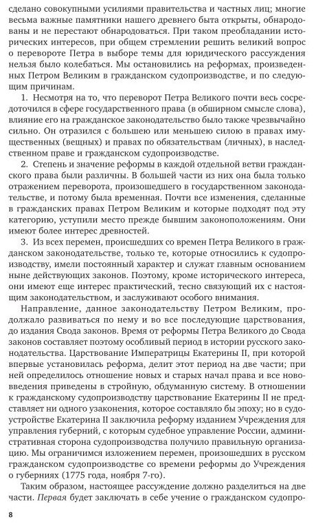 Кавелин в настоящем издании поднимает вопрос о реформах, произведенных Петром Великим в гражданском судопроизводстве, а также о влияние его на гражданское законодательство, которое было чрезвычайно сильным и отразилось в правах имущественных (вещных) и правах по обязательствам (личных), в наследственном праве и гражданском судопроизводстве.