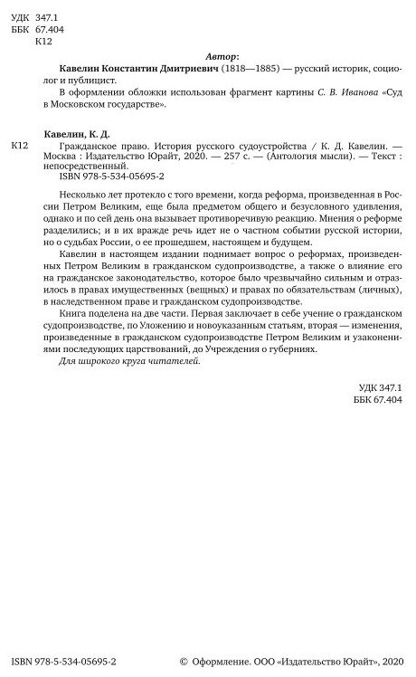 Гражданское право. История русского судоустройства (Константин Дмитриевич Кавелин); ЮРАЙТ, 2018