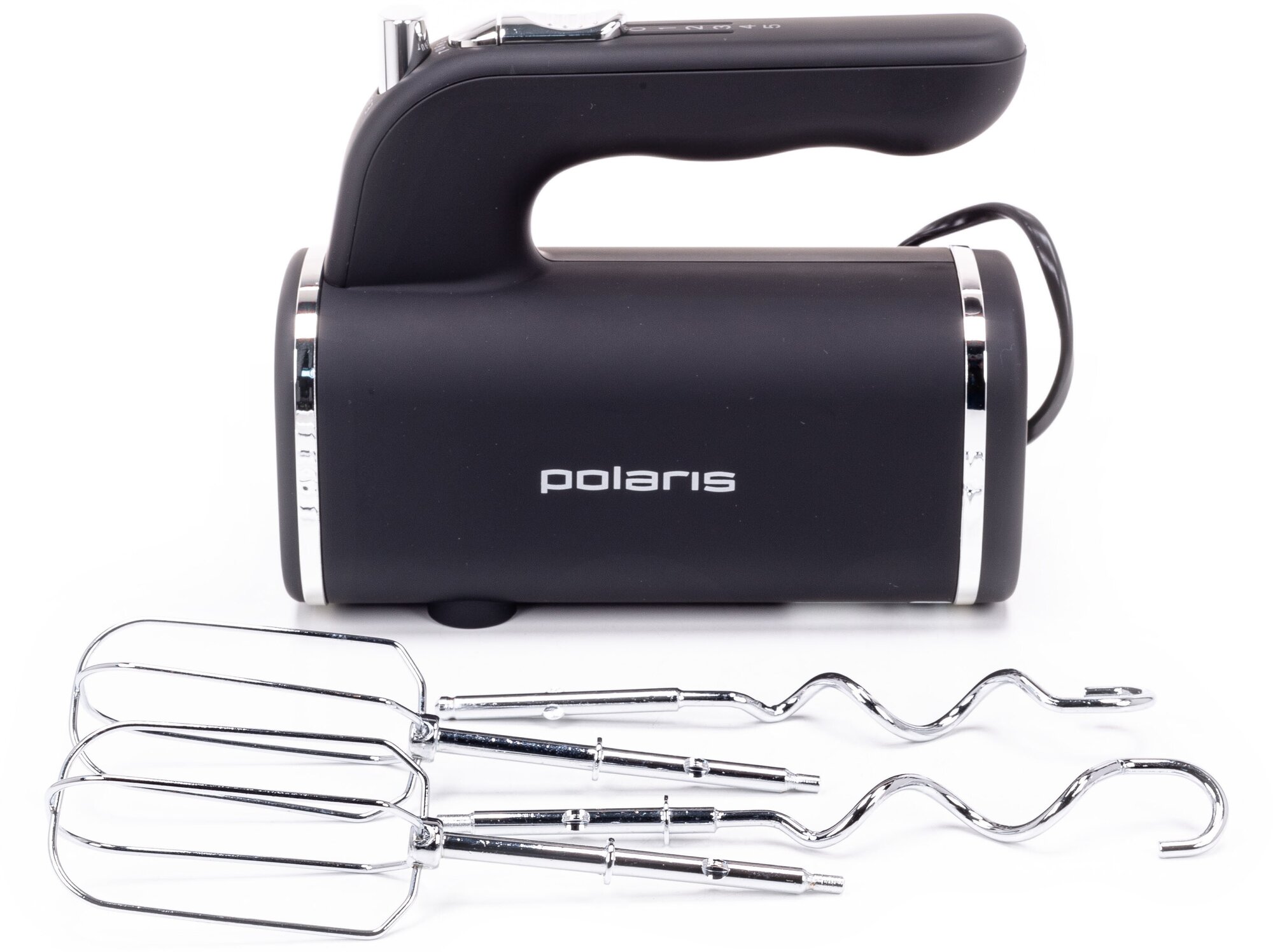 Миксер Polaris поставляется в комплекте с венчиками для взбивания кремов и яиц, а также со специальными приспособлениями для замешивания густого теста. Прибор подходит для выполнения любых работ – в нём предусмотрено пять скоростей вращения мотора, а также турбо-режим, кратковременно повышающий мощность.