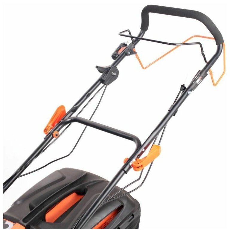 - Электро-стартер просто супер, тихий и мощный мотор, выброс травы в сторону.
