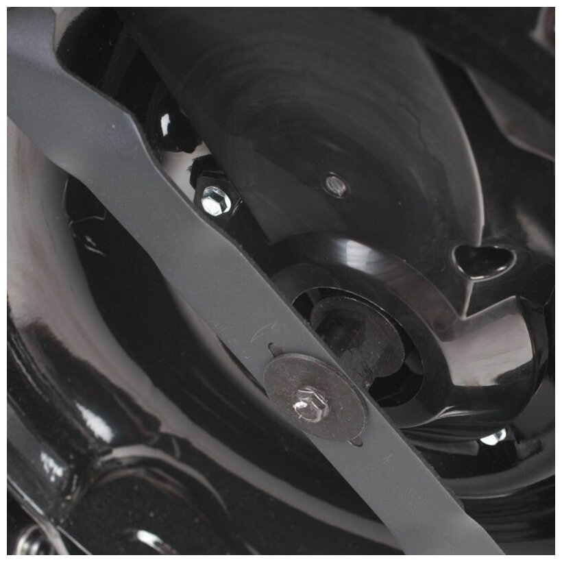- Мощность двигателя. Яркий дизайн. Большие ведущие колеса. Боковой выброс из деки. Нож покрыт тефлоном.