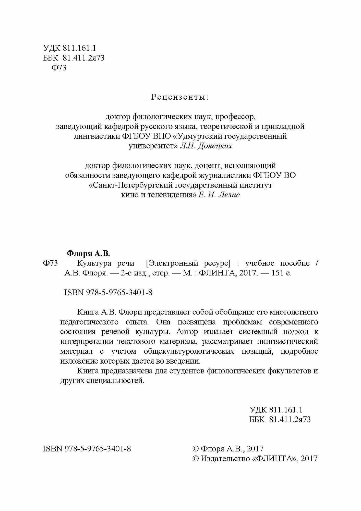 Культура речи. Учебное пособие (А. В. Флоря); ФЛИНТА, 2017