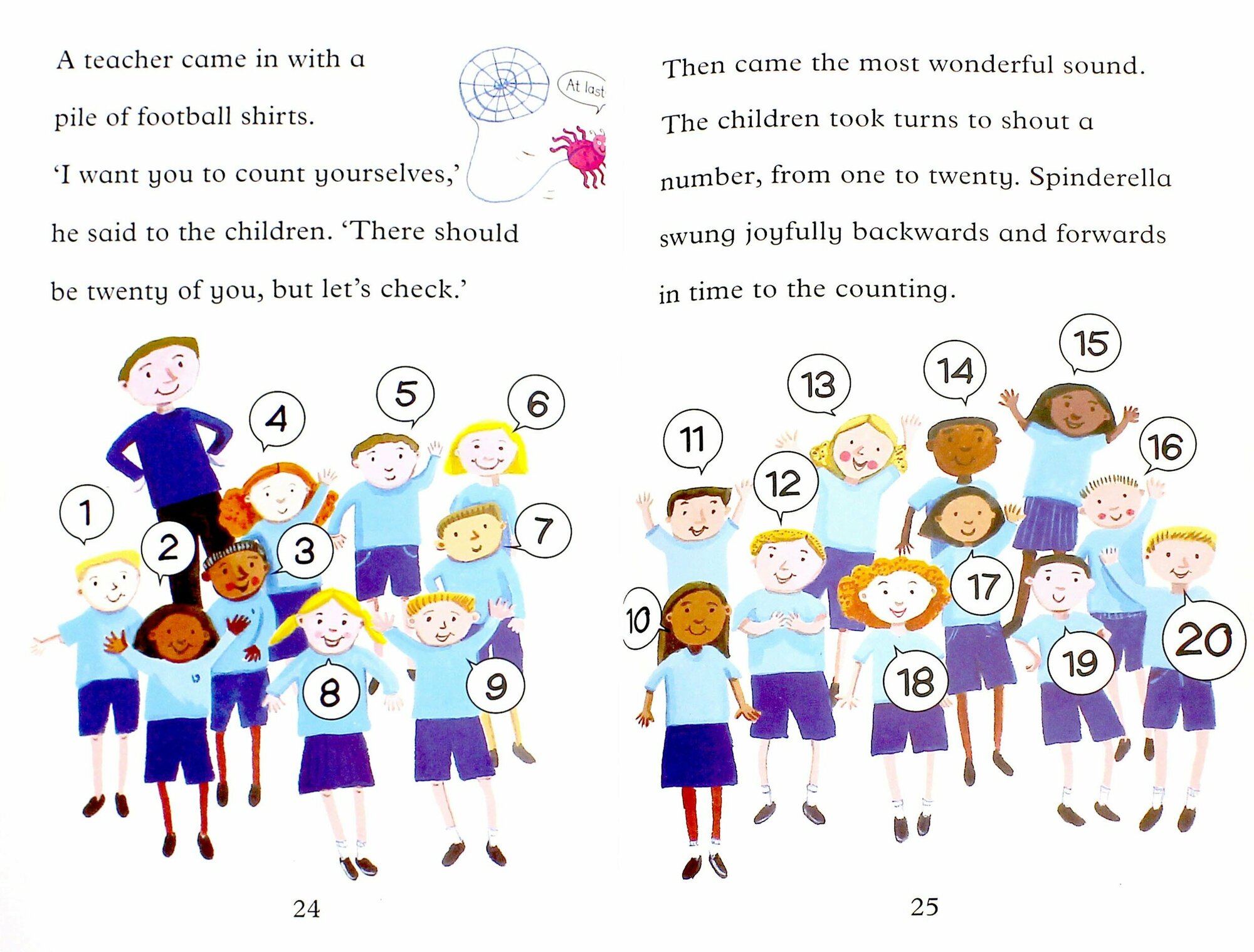 Spinderella the spider has a passion for football! She tries to play a match with her brothers and sisters but she doesn't know how many spiders should be on each team. Even worse, she can't count the goals! Luckily for Spinderella, her Hairy Godmother has a plan . . .