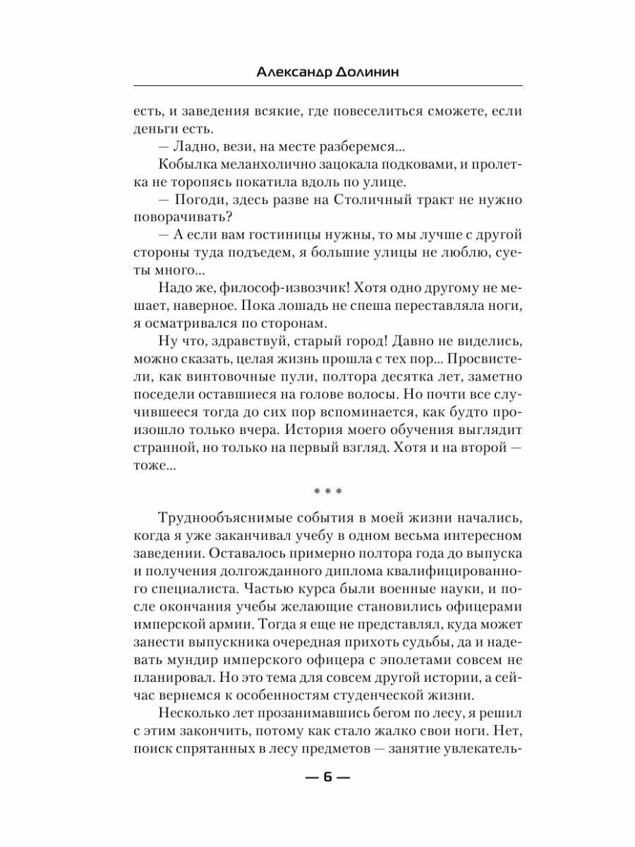 Книга начинающего писателя Александра Долинина с первых строчек подкупает диалогичностью с читателем. Возникает ощущение встречи со старым другом, который с мягким интеллигентным юмором знакомит читателя с окружающей его реальностью и событиями своей трудной жизни специального агента. Все главные герои книги очень быстро становятся близкими и интересными читателю. Книга читается на одном дыхании, и когда прочтены последние строчки, возникает ощущение грусти от расставания и очень хочется узнать о дальнейшей судьбе героев.
