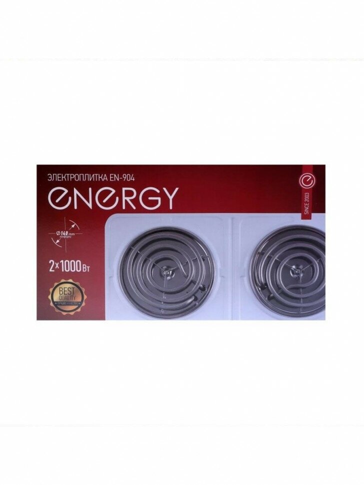 Плита настольная Energy - оптимальный вариант для владельцев небольшой кухни или для использования на даче. Позволит быстро приготовить пищу при отсутствии стационарной плиты. Снабжена спиральными конфорками. Плавная регулировка температуры при помощи поворотных переключателей. Световая индикация работы. Прорезиненные ножки обеспечивают устойчивое положение. Защита от перегрева убережет от чрезвычайных происшествий на кухне.