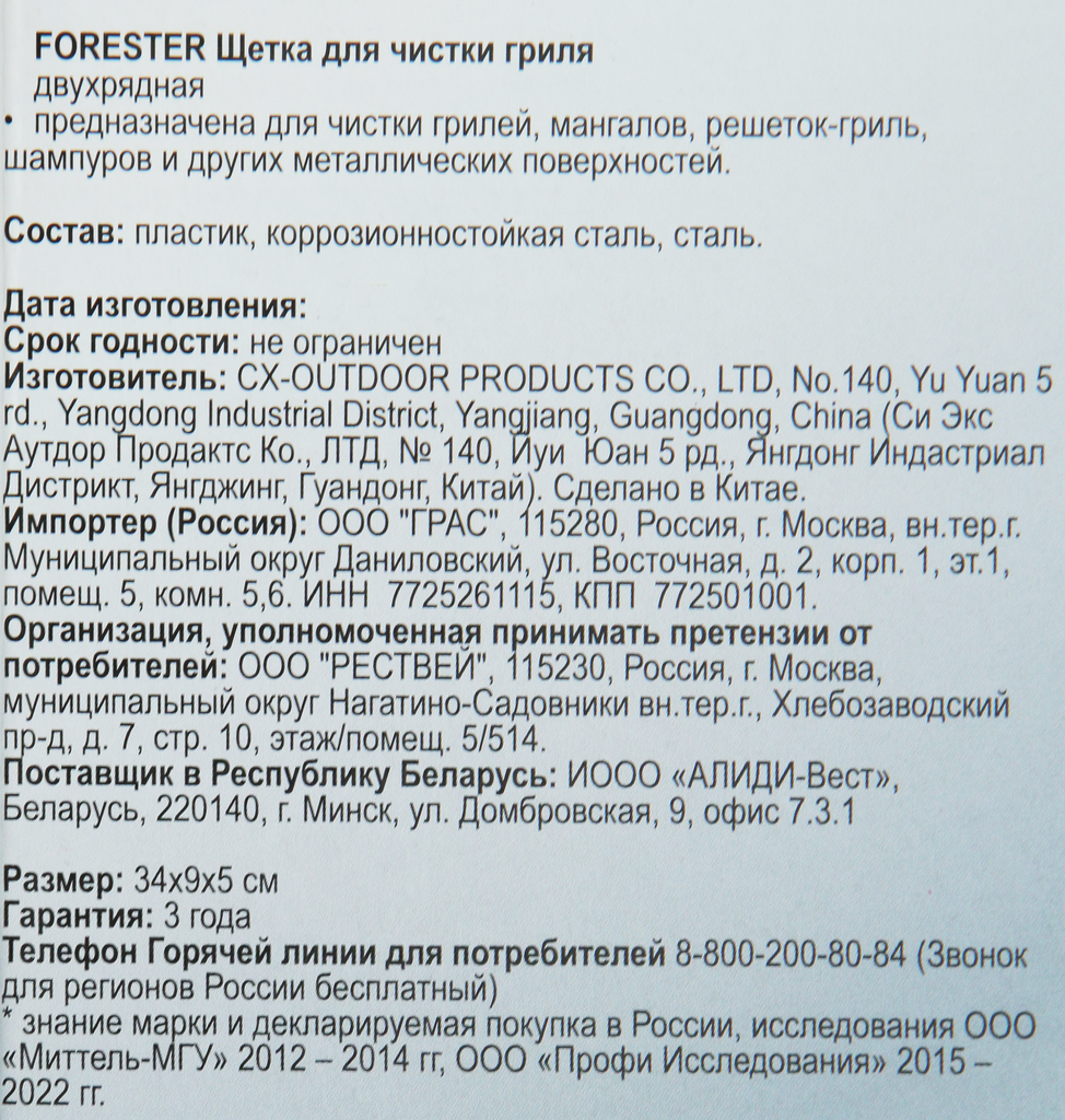 Модель: Щётка для чистки гриля на длинной ручке FORESTER