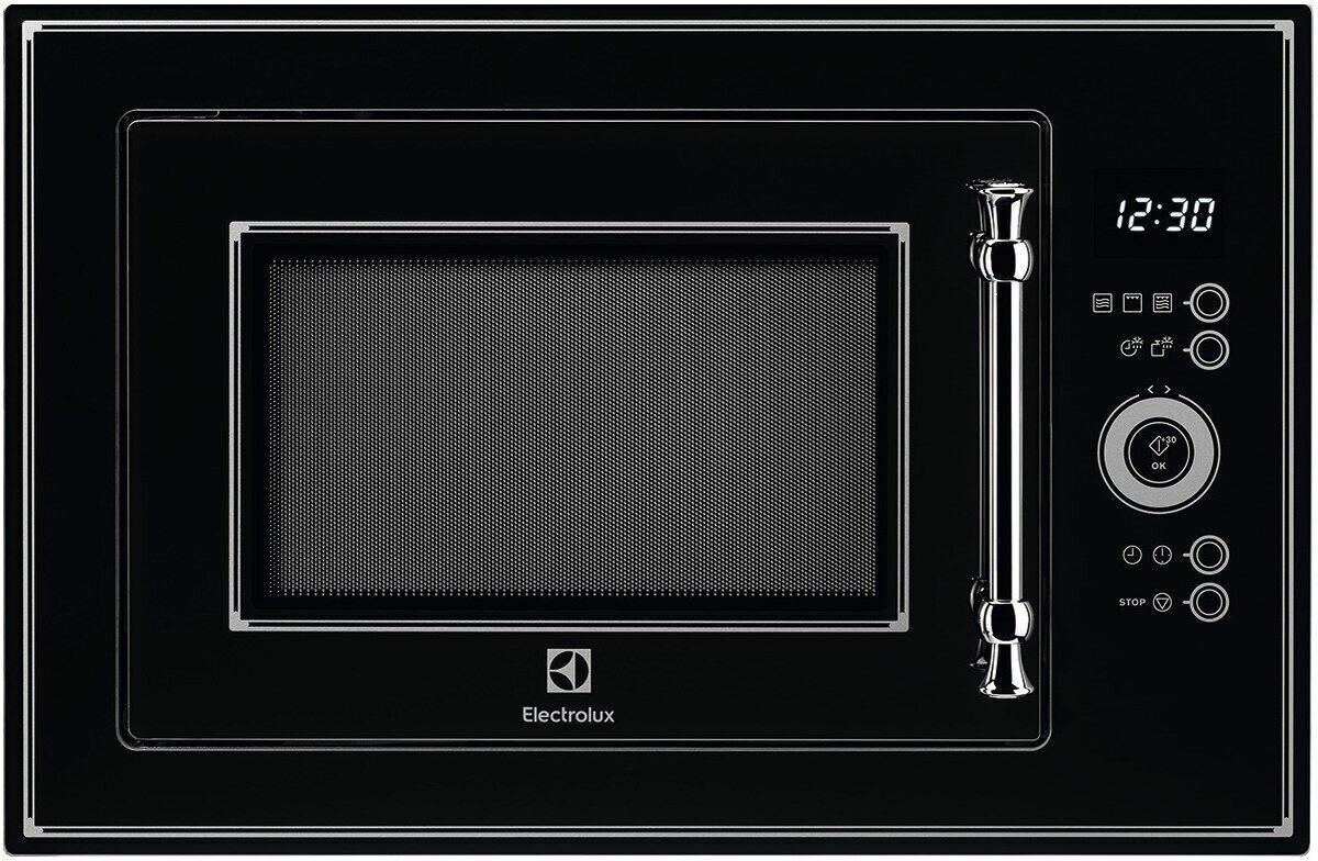 Микроволновая печь Electrolux черного цвета представлена в изящном стиле с фурнитурой оттенка «серебро». Модель имеет такие режимы, как автоматическое приготовление, разогрев, гриль и размораживание, что способствует комфортной эксплуатации. Кроме того, на внешней стороны устройства предусмотрен цифровой дисплей. Петли дверцы расположены с левой стороны.