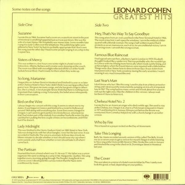 "" - переиздание на 180-граммовом виниле сборника лучших песен канадского музыканта Леонарда Коэна, изначально изданного в 1975 году под названием «The Best Of Leonard Cohen».