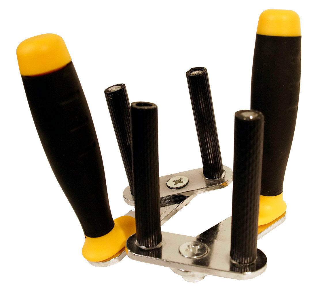 Значительно упрощает переноску гипскартонных плит и прочих панелей. Лист удерживается за счет силы тяжести и силы трения в обрезиненных ограничителях. Комплект 2 шт. Двухкомпонентные рукоятки. Пластиковая ручка, стальной корпус.