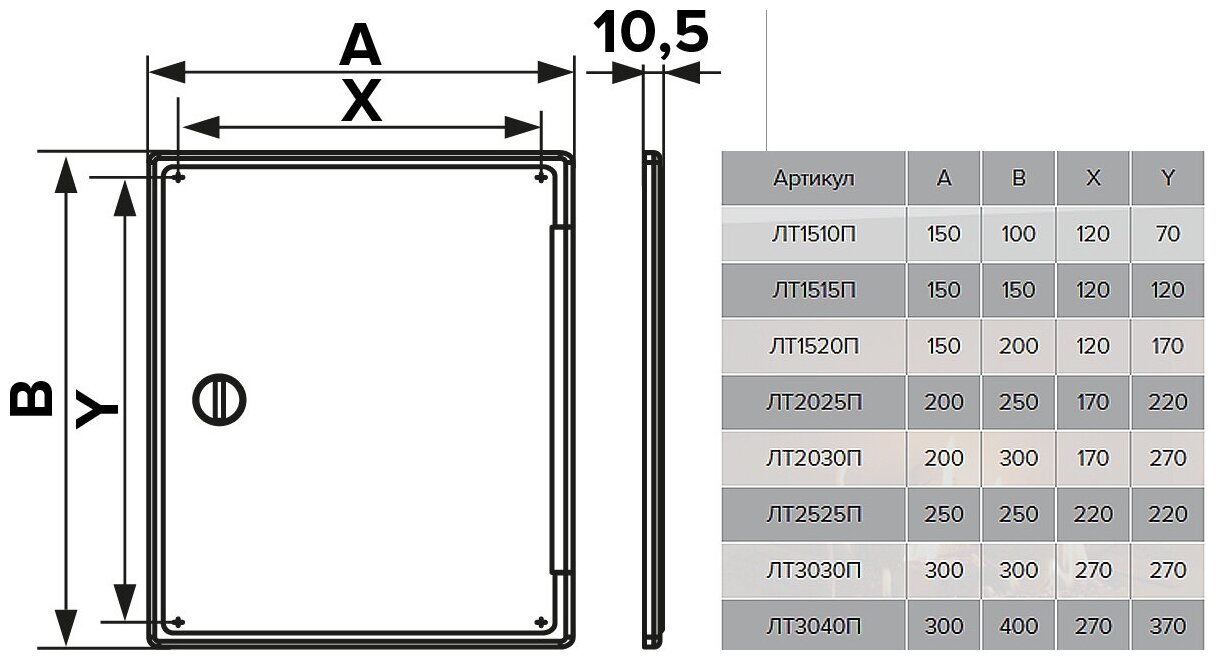 Люк-дверца ревизионный пластиковый с ручкой-задвижкой серии ЛТП.