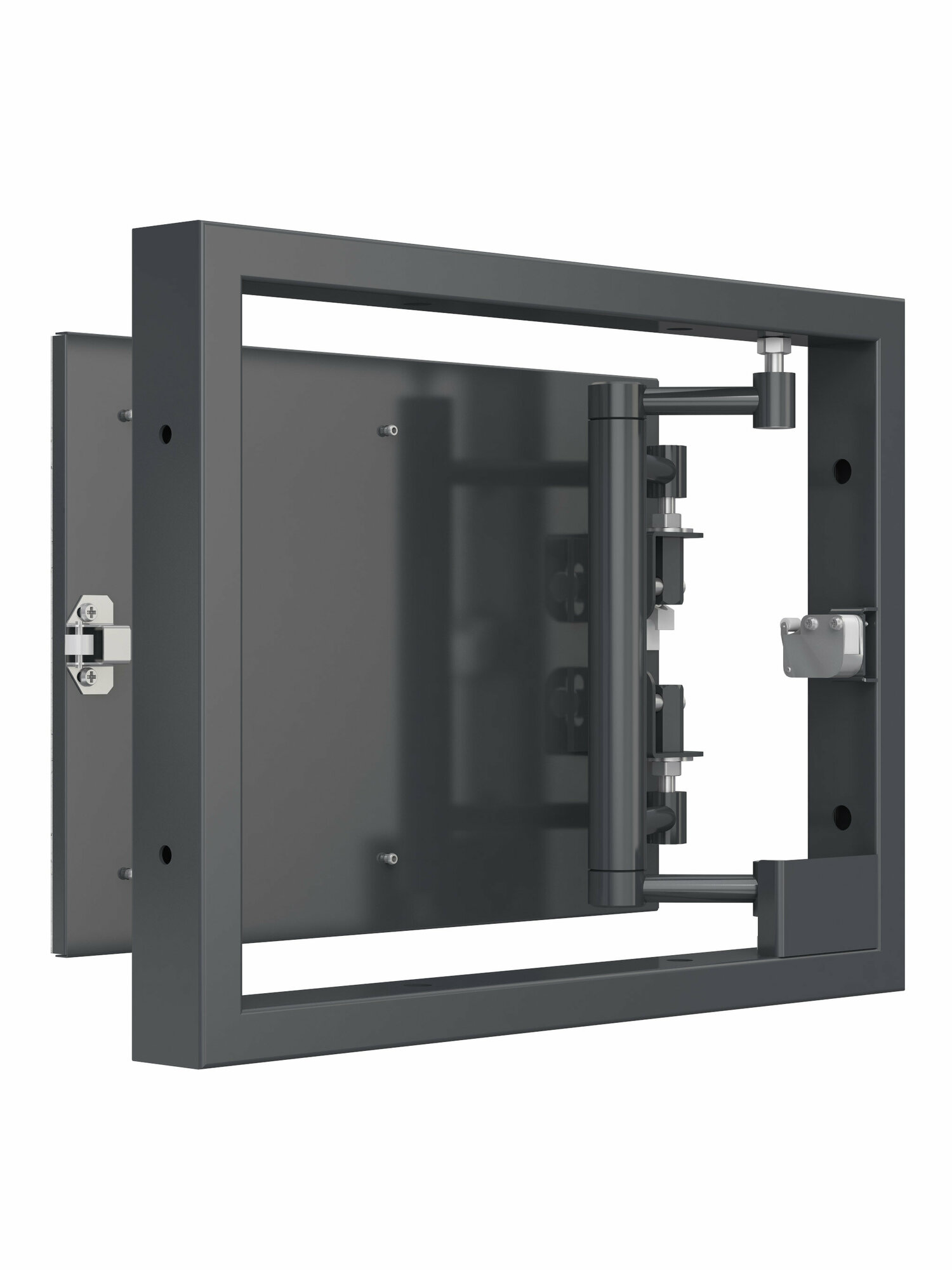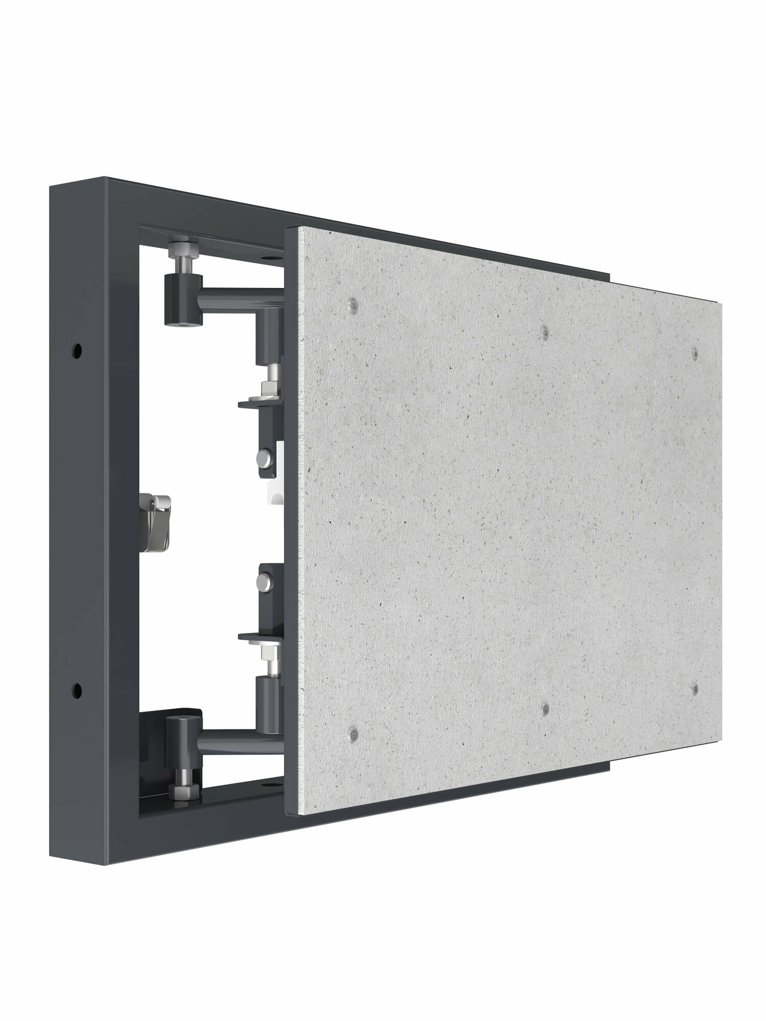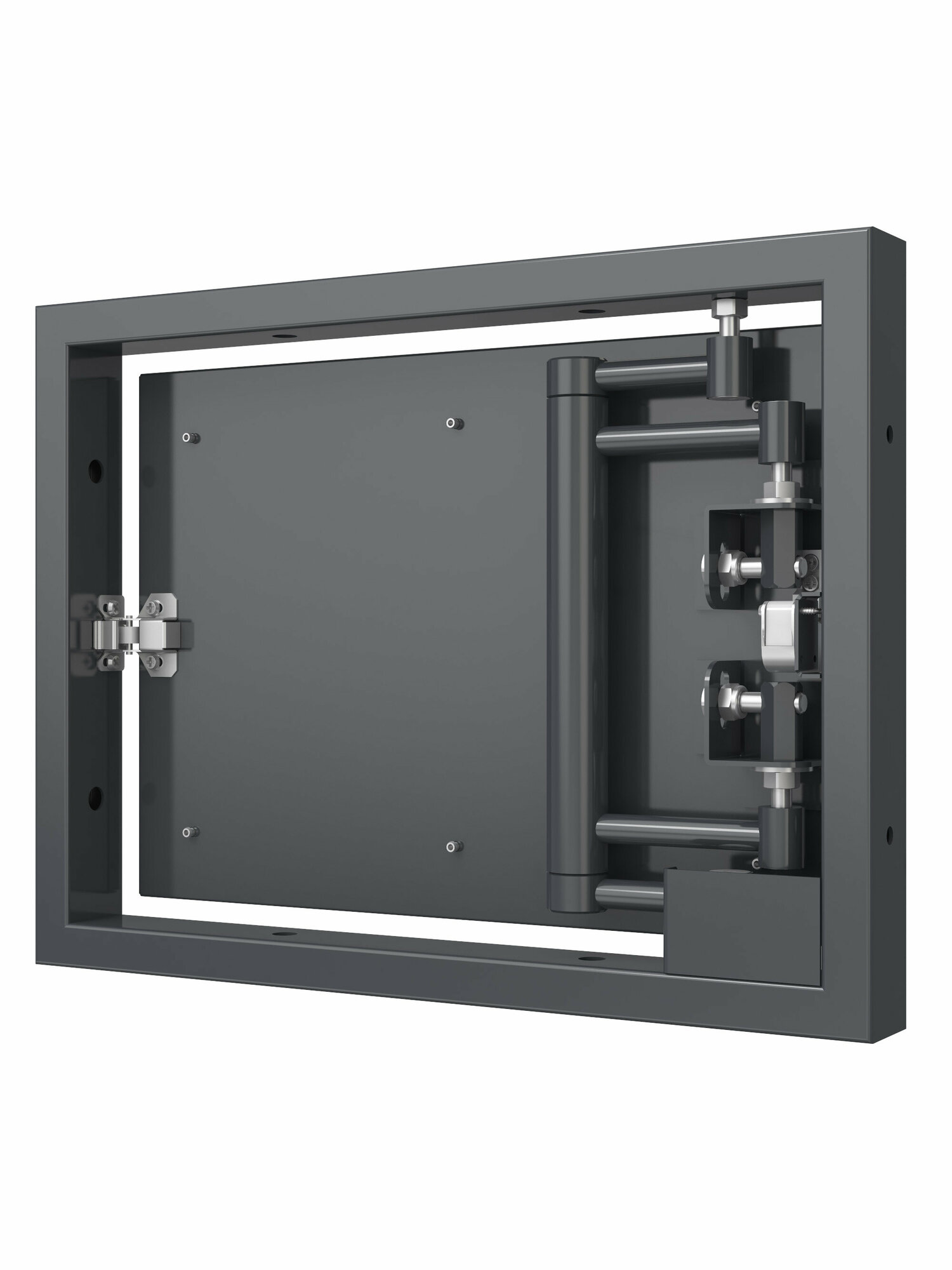 Люк-дверца предназначен для установки в стенах и перегородках. Монтаж осуществляется с помощью шурупов. Каркас люка и рама дверцы изготовлены из стали с покрытием полимерной эмалью, что обеспечивает стойкость к коррозии. Оснащены шарнирной регулируемой петлей оригинальной конструкции для фронтального открытия двери.