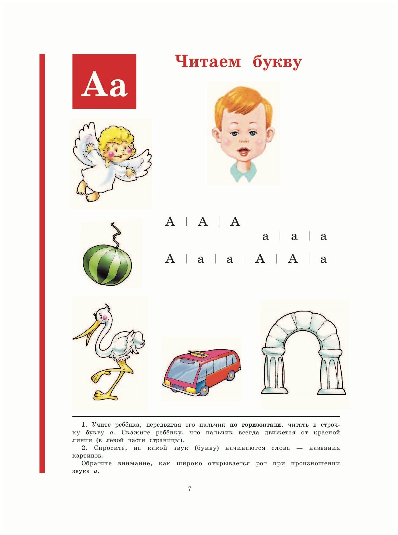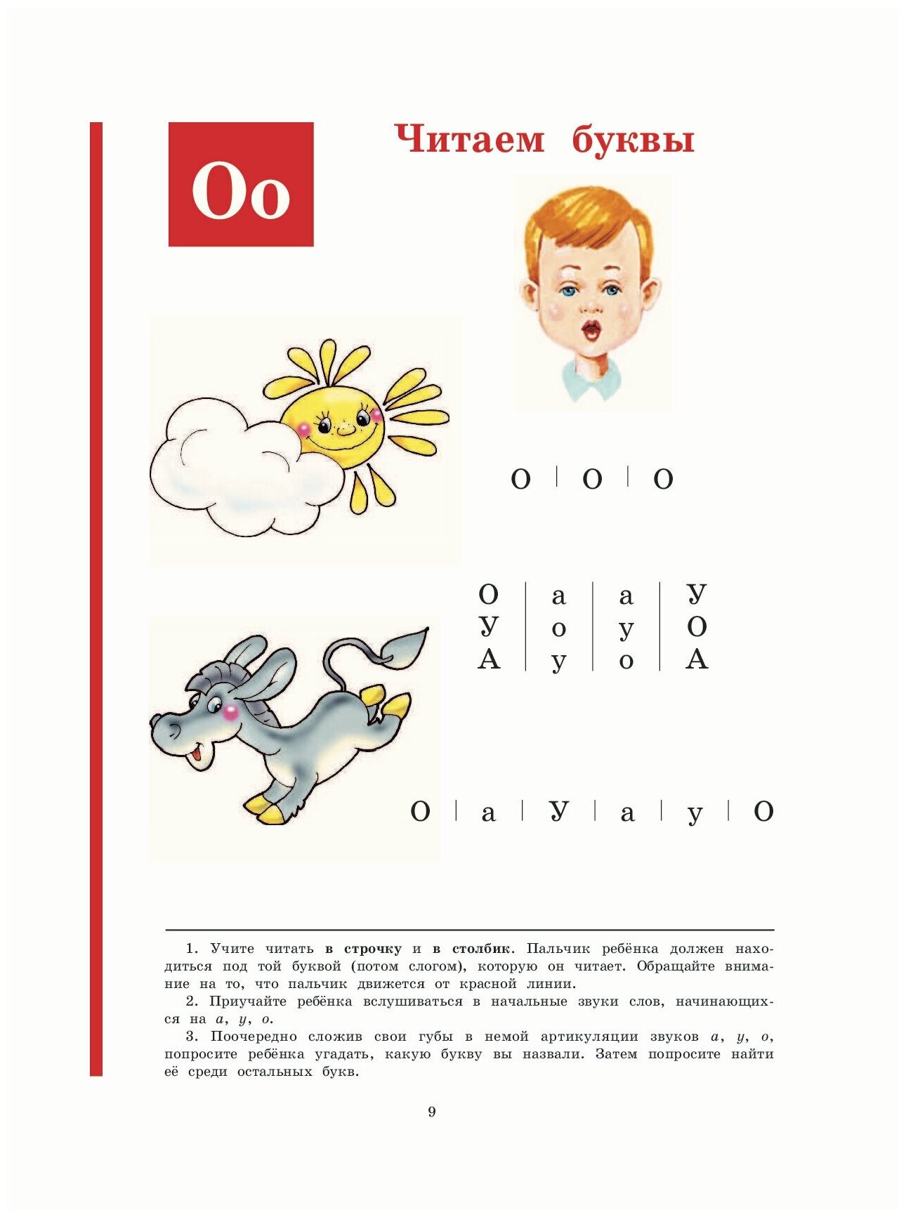 На мой взгляд, один из лучших букварей. Во-первых, рекомендованный специалистами формат книги А 4. Во-вторых, каждый листок содержит внизу инструкцию как заниматься с ребёнком. Чтение букв происходит не только по горизонтали, но и по вертикали. Такая подача информации очень удобна для мам, которые не имеют педагогического образования и не знают, как правильно донести до ребёнка смысл задания.