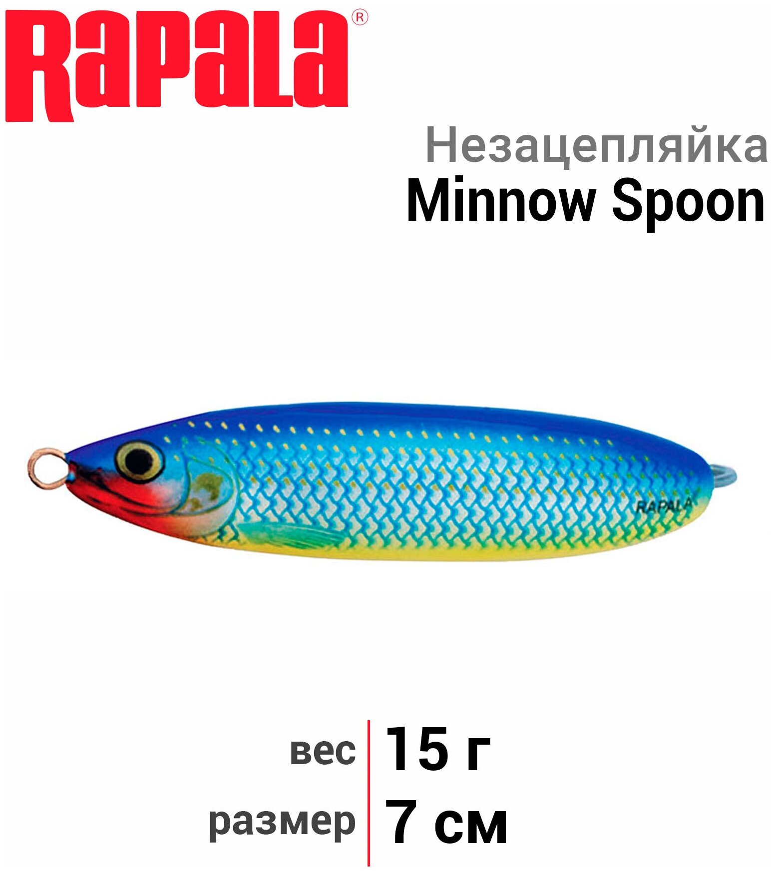 Незацепляйка RAPALA Minnow Spoon 07 /BSH / 7см, 15гр. Колеблющаяся блесна Rapala Minnow Spoon представляет собой уникальную по поведению приманку, имеющую защиту крючка. В проводке демонстрирует размашистую игру с большой амплитудой, за счет чего она так хорошо заметна хищнику с большой дистанции. В конструкции данной модели предусмотрен упругий проволочный усик, защищающий острый крючок VMC® Perma Steel от случайных зацепов при проводке. Тем не менее, при поклевке хищной рыбы он легко сгибается и освобождает острие для подсечки. Это позволяет эффективно использовать блесну Minnow Spoon в сложных для ловли условиях, а также на водоемах с обильной растительностью, не беспокоясь о потере приманки. Большая палитра расцветок включает оригинальные флуоресцентные окраски для ловли в условиях ограниченной видимости. Объемные голографические глаза и детально прорисованные жаберные крышки усиливают сходство с живой рыбкой. Сверху на приманку нанесено антикоррозионное покрытие, защищающее стальную основу от негативного воздействия воды. Великолепная приманка с привлекательной и стабильной игрой не только при разных скоростях проводки, но и на паузе , когда приманка тонет, она соблазнительно покачивается , гипнотизируя любого хищника.