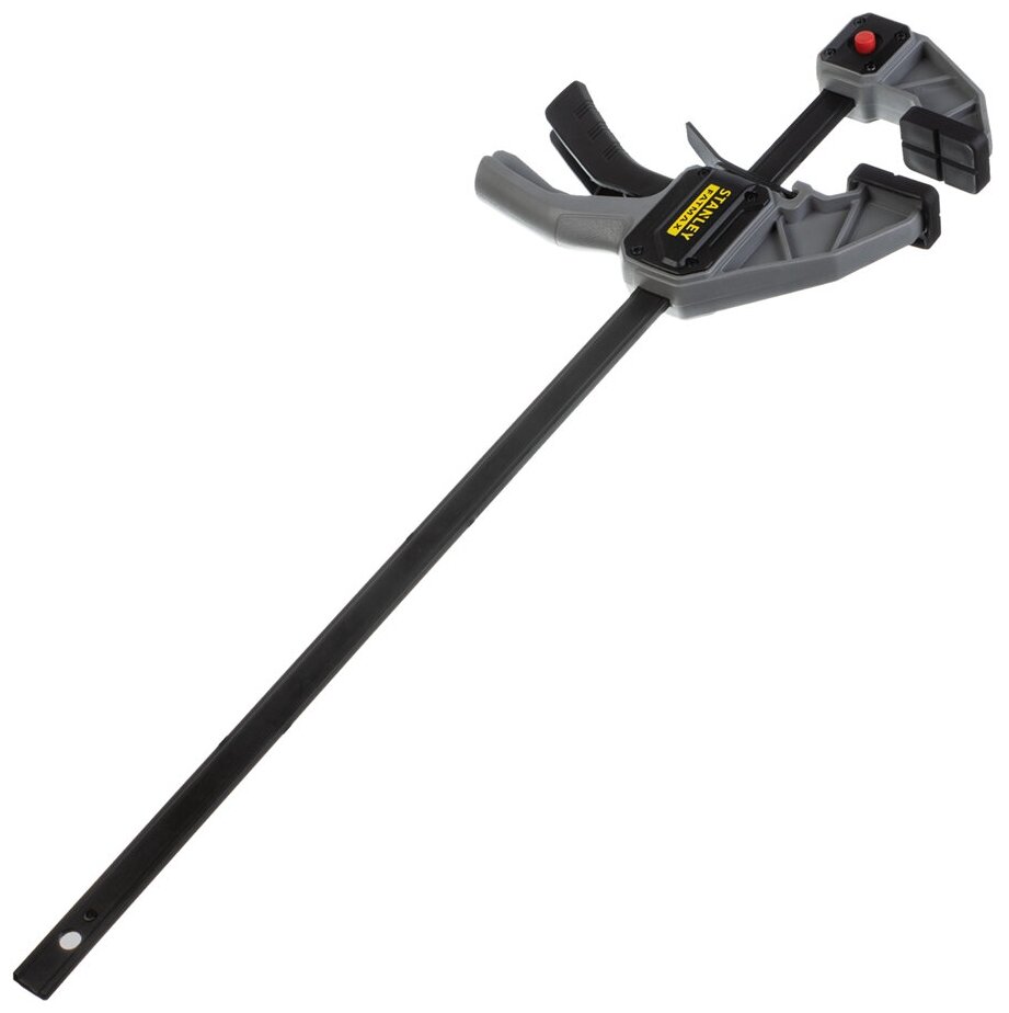 Триггерная струбцина Stanley FatMax предназначена для фиксации заготовки во время проведения различных работ. Она изготовлена из усиленного нейлона и стали, что обеспечивает надежность и долгий срок эксплуатации. Кроме того, ее конструкция может использоваться в обратном направлении, что дает возможность использовать данный инструмент в качестве распора.