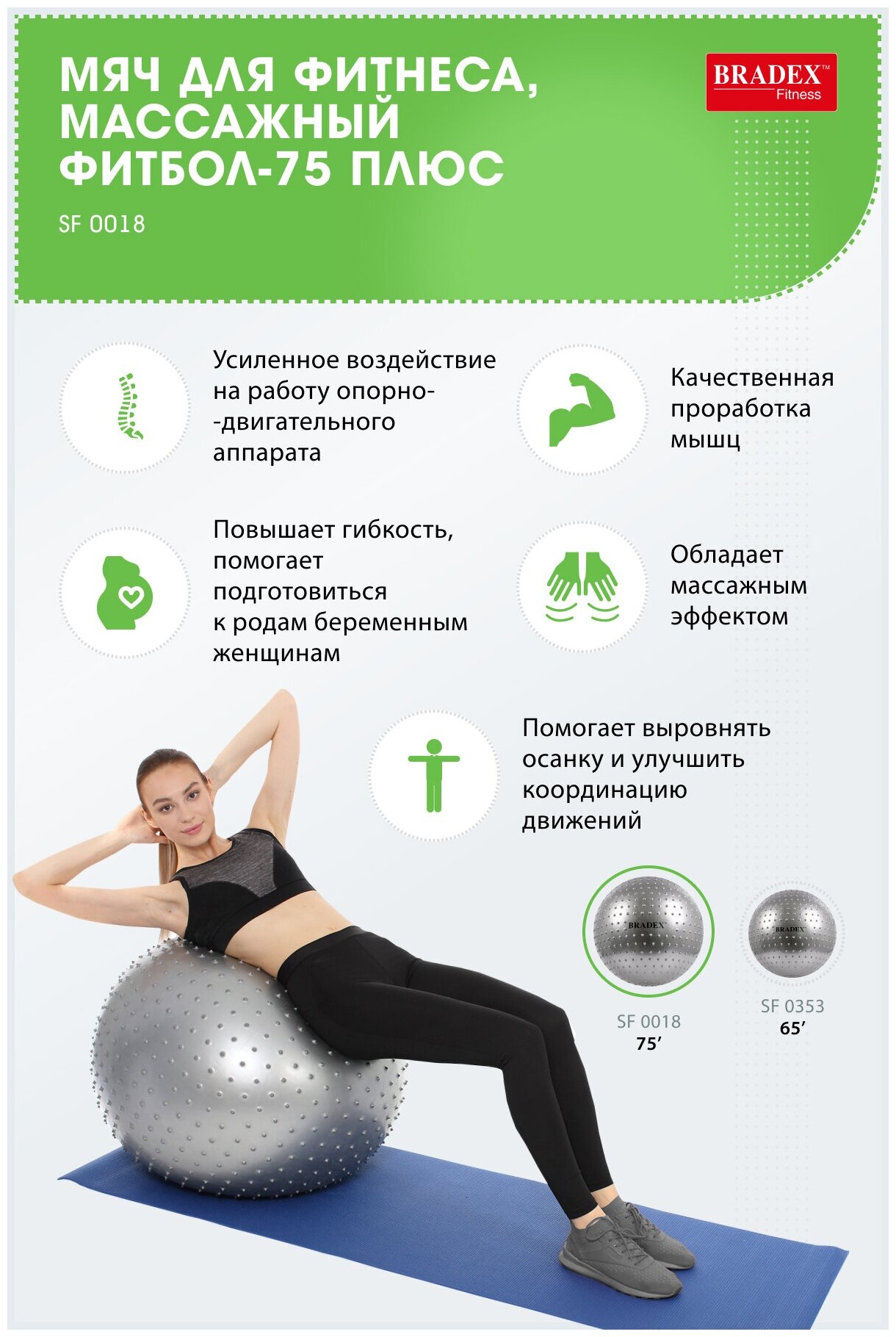 - BRADEX | Мяч для фитнеса "Фитбол-75 Плюс" массажный SF 0018 | SF 0353