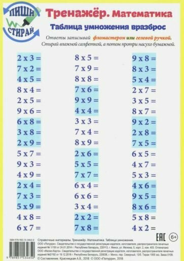 На сегодняшний день товар «Книга: Справочные материалы. Тренажер. Математика. Таблица умножения. Таблица умножения вразброс (Красницкая А. (сост.)); Попурри, 2018» можно купить с кешбеком в 4 магазинах: book24, Буквоед, Читай-город, Яндекс.Маркет