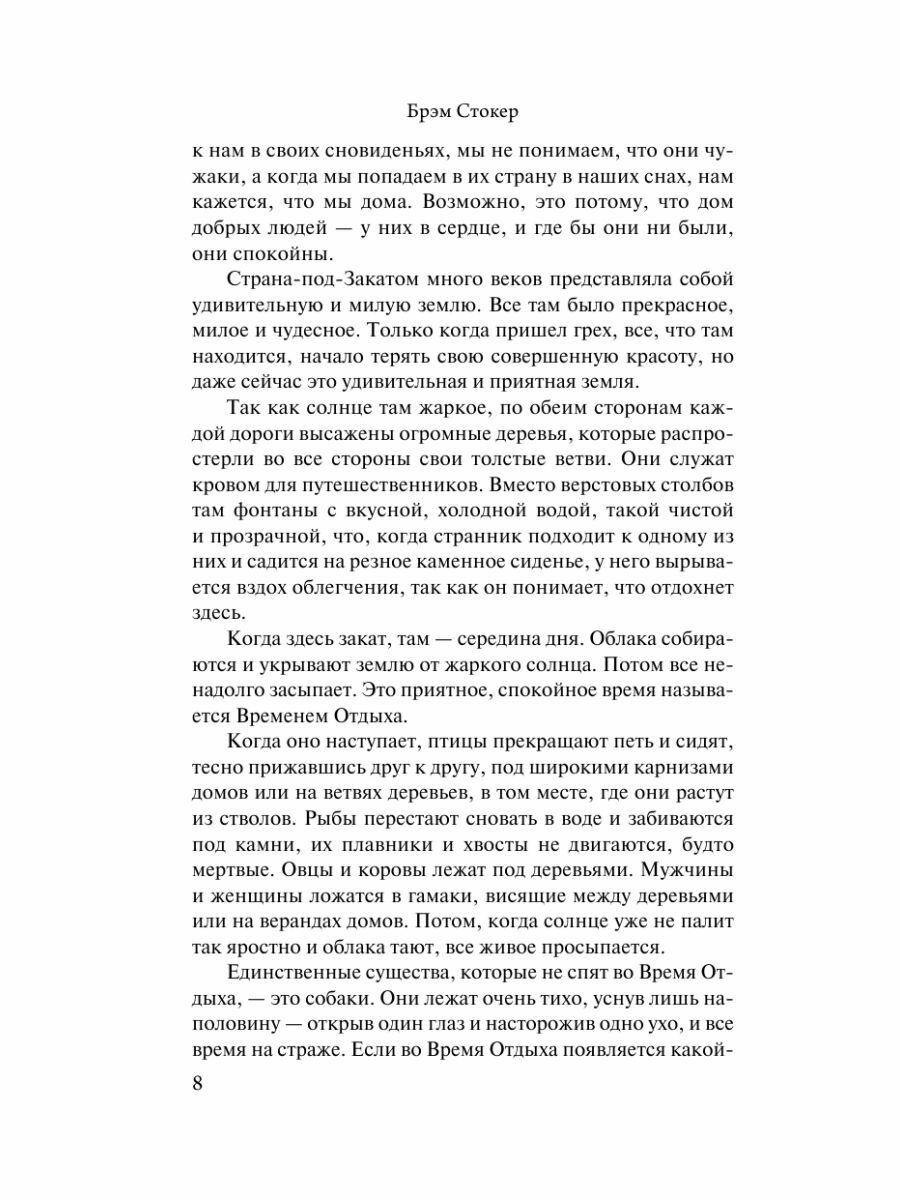 "Под закатом" - сборник литературных сказок, в которых народный фольклор причудливо сочетается с христианской моралью: тут вам и принцы с великанами,и ангелы с демонами. Напоминает сказки Оскара Уайльда. И неудивительно - Уайльд когда-то хотел жениться на жене Стокера Фрэнсис,но она выбрала Брэма. Впрочем,друзьями они остались.