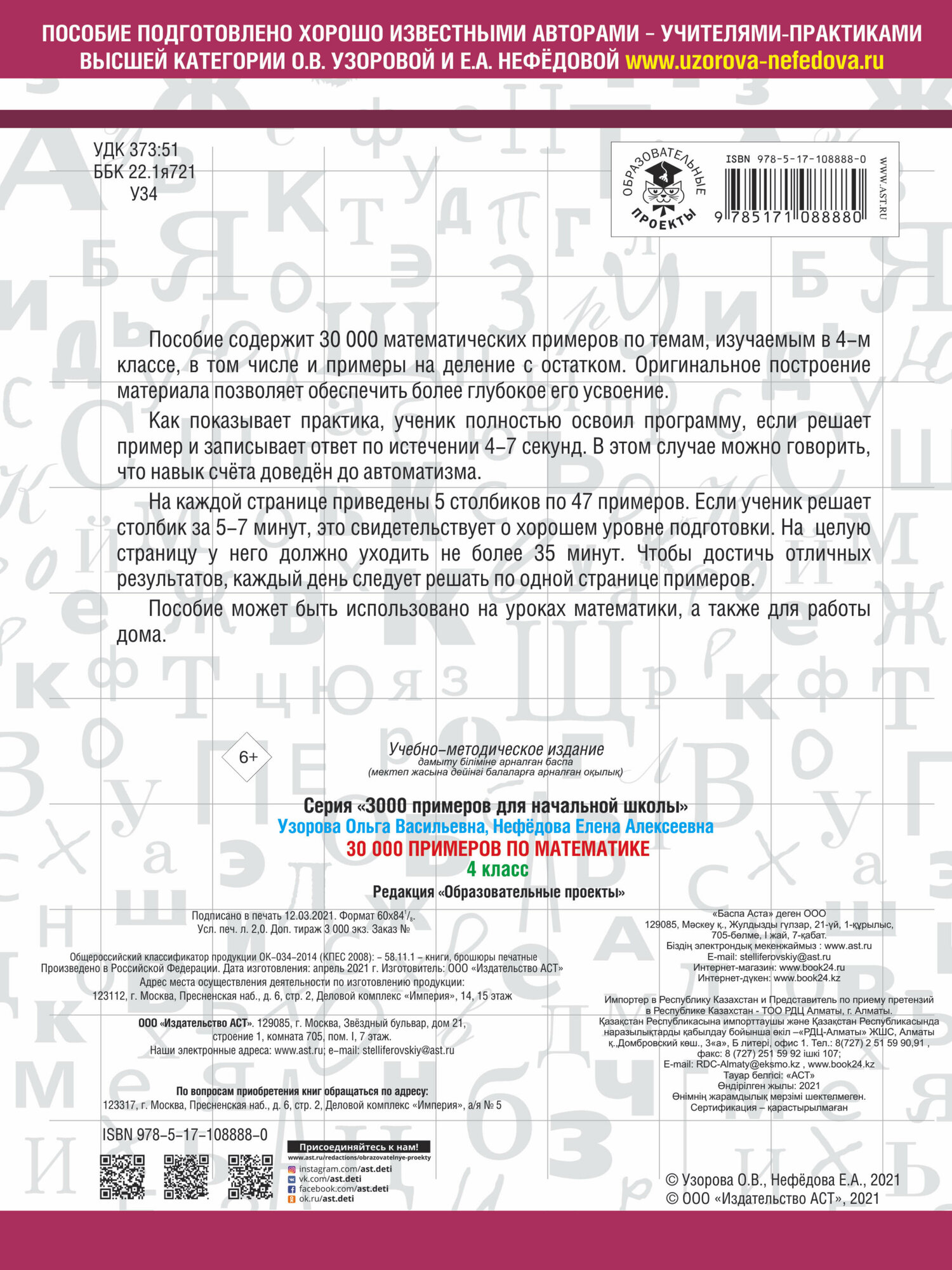 30 000 примеров по математике 4 класс (Елена Алексеевна Нефедова, Ольга Васильевна Узорова); АСТ, 2021
