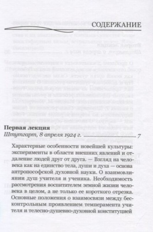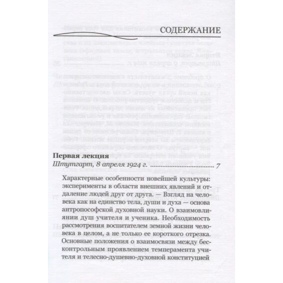 В представленном в книге цикле лекций Рудольф Штайнер рассказывает о принципах вальдорфской педагогики, основанной на представлении о человеке как единстве души, духа и тела. В этой связи автор подчеркивает важность личности учителя, формирующего душу ребенка. Он подробно останавливается на взаимозависимости души и тела и показывает, как то, что душа впитала в себя в детском возрасте, проявляется в теле взрослого человека в качестве здоровья или болезни.