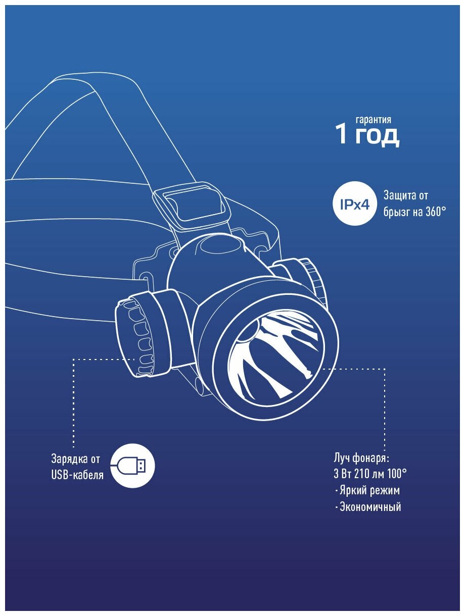 | Доп. наименование Водопад | Фонарь налобный Космос KOCH3WLi-On светодиодный, зарядка от USB |