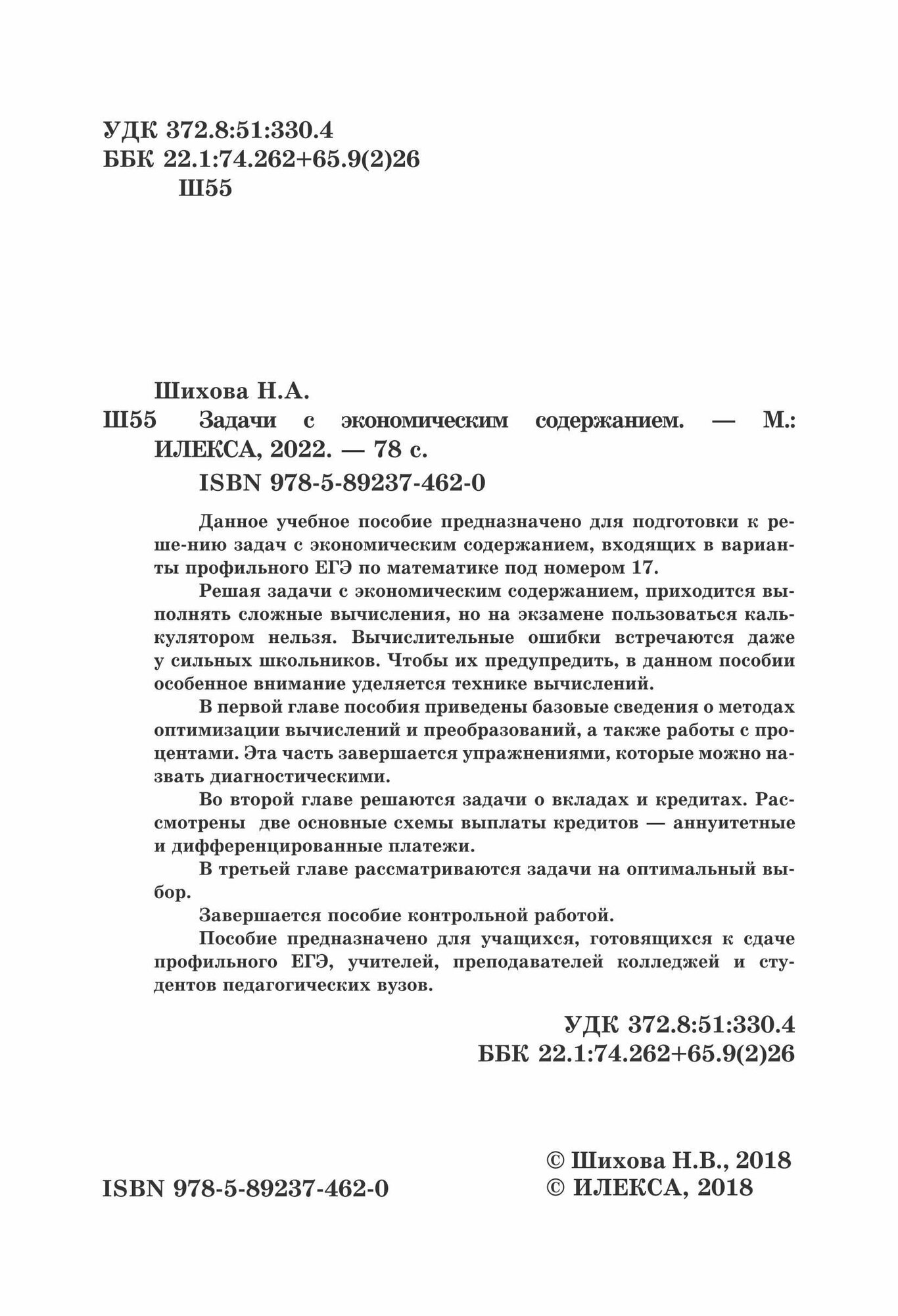 Задачи с экономическим содержанием (Надежда Анатольевна Шихова); Илекса, 2018