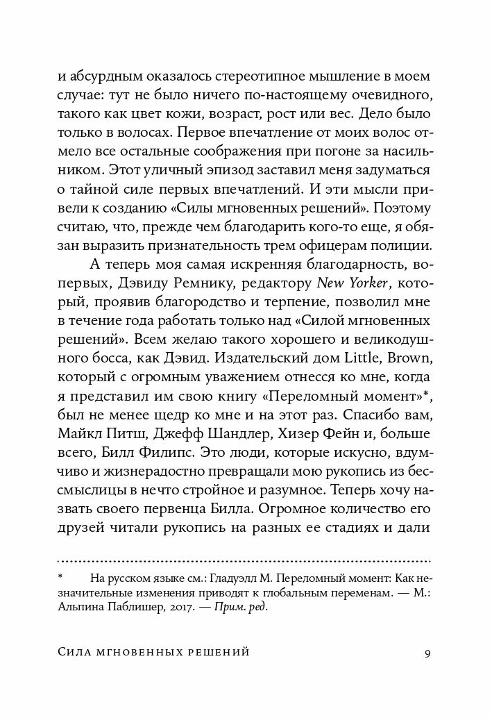 "Сила мгновенных решений - это не только восхваление силы первого взгляда. Мне интересны и те моменты, когда наша интуиция нас подводит..."