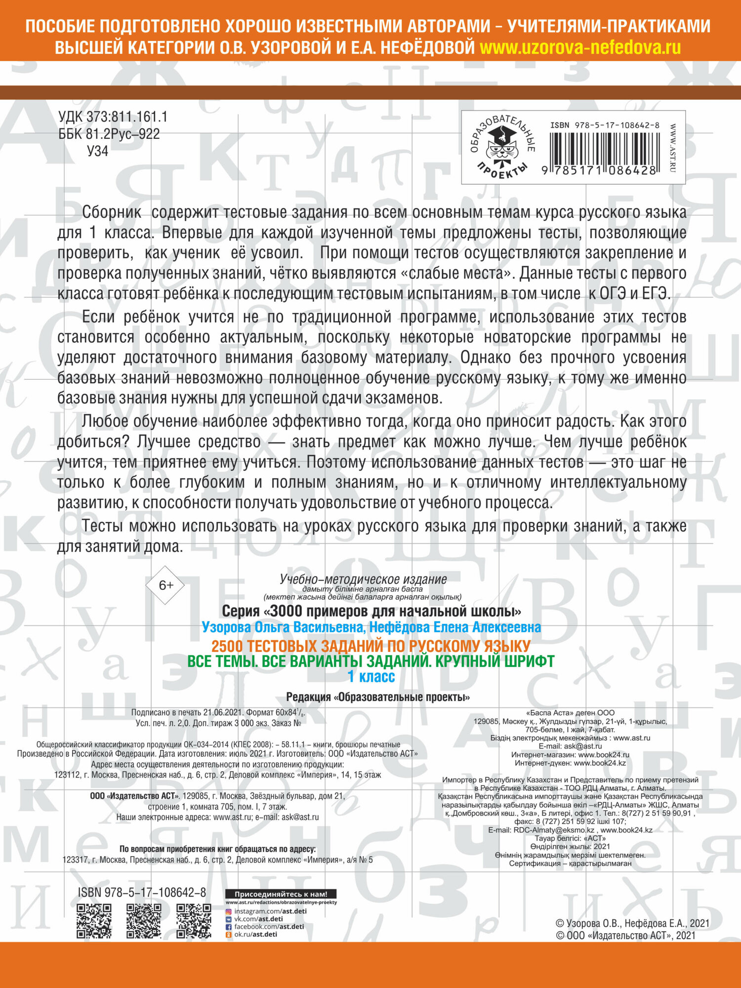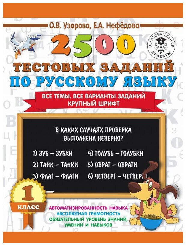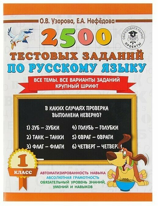 2500 тестовых заданий по русскому языку. 1 класс (Елена Алексеевна Нефедова, Ольга Васильевна Узорова); АСТ, 2021