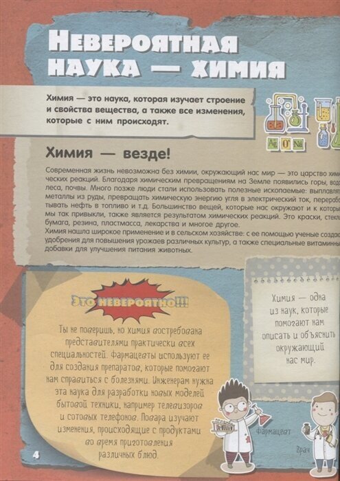 Книгу покупала для пятилетнего сына, он очень интересуется химией и биологией, обожает разного рода опыты. Восторг от чтения неописуемый! Конечно, самостоятельно ему читать книгу с подобным содержанием ещё рано, но рассказ взрослого с пояснениями слушает во все уши.
