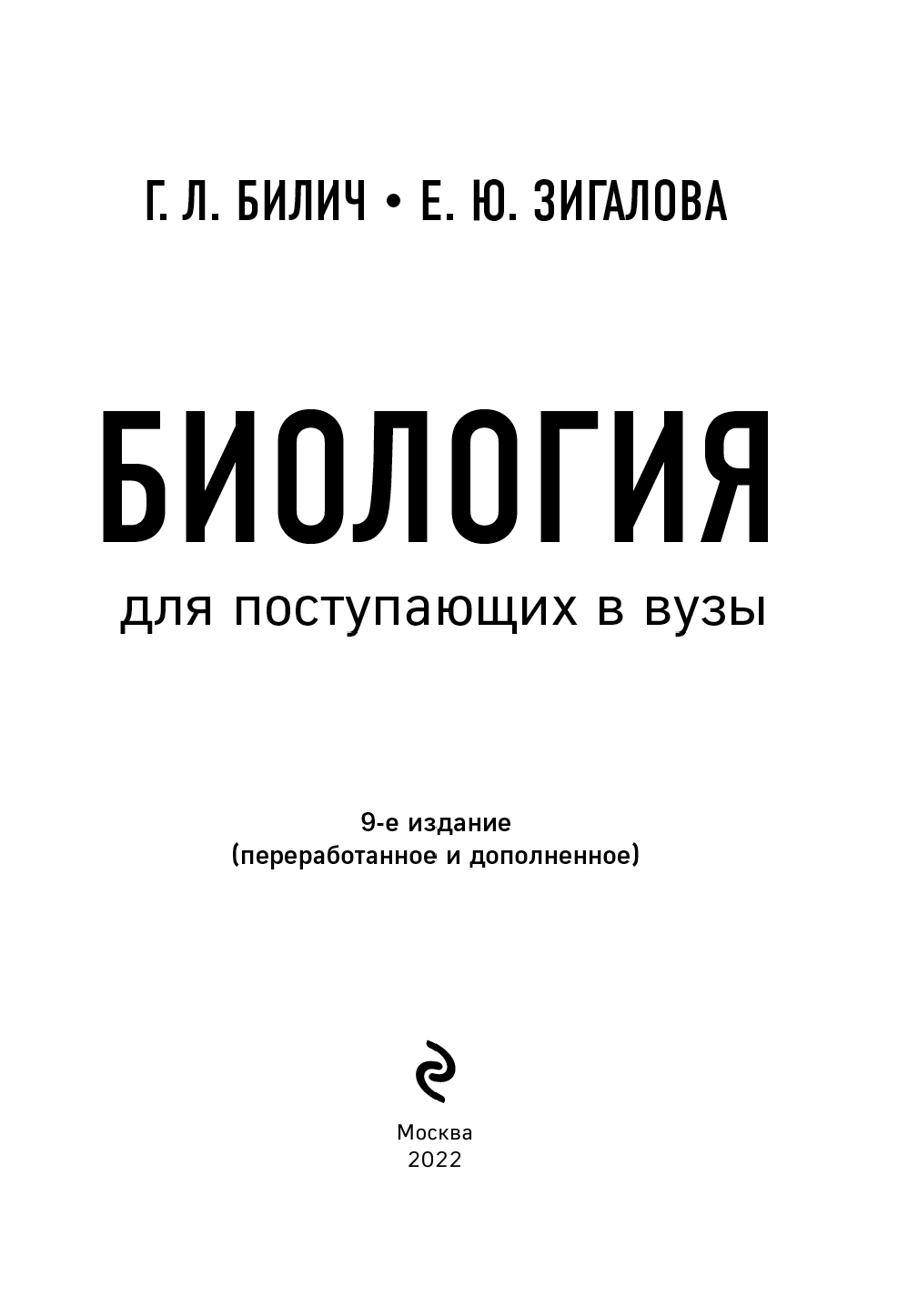 Биология для поступающих в вузы (Елена Юрьевна Зигалова, Габриэль Лазаревич Билич); Эксмо, 2025