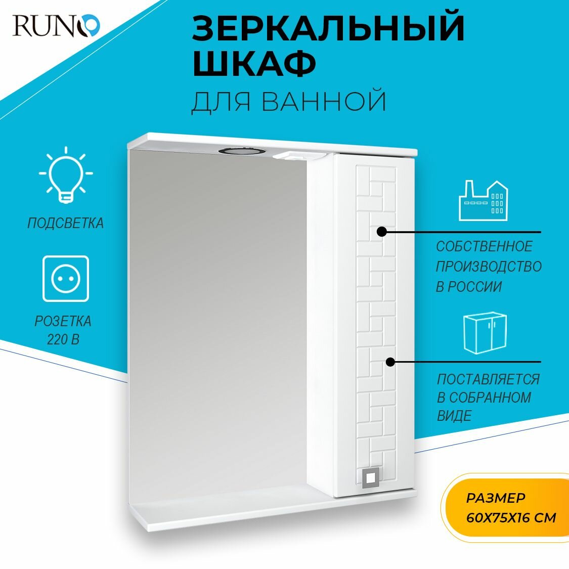 Модель: Зеркало-шкаф Runo Авила 60 с подсветкой белый