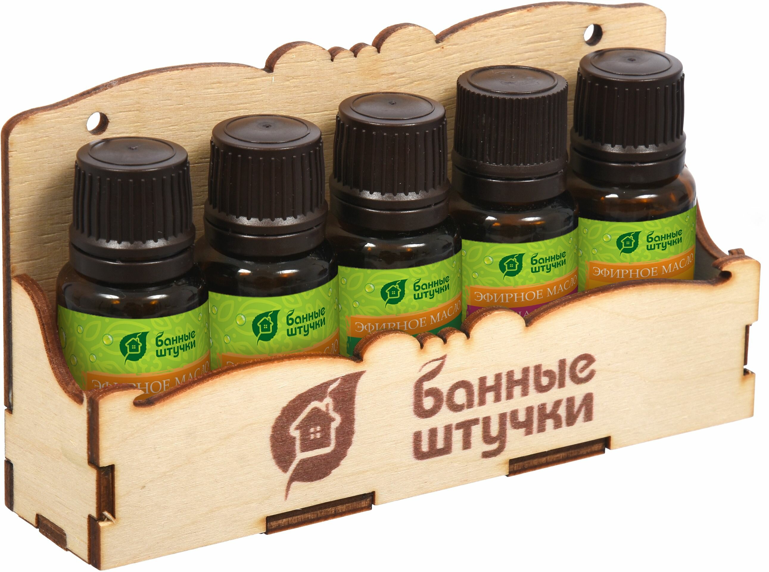 Масло еще можно применять для массажа, но его необходимо смешивать с нейтральной основой. Масло добавляется в ковш с теплой водой, которой можно поливать камни, деревянные полки или стены, а также добавлять в тазик для запаривания веника. Флаконы помещены на деревянную подставку, которую можно подвешивать к стене.