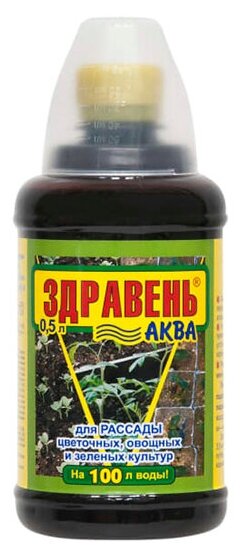 ЗДРАВЕНЬ-АКВА для рассады цветочных, овощных и зеленых культур - жидкое комплексное органоминеральное удобрение для корневой и некорневой подкормки рассады (овощных, цветочных и зеленых культур) в личных подсобных хозяйствах.