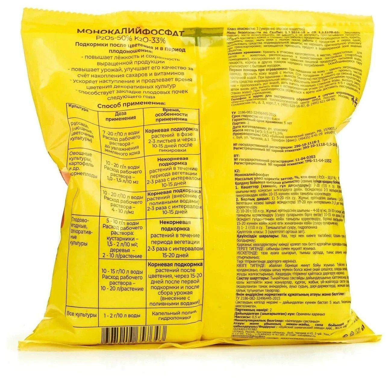 | Состав (%) | Фосфор (Р2О5)-50%, Калий (К2О)-33% |