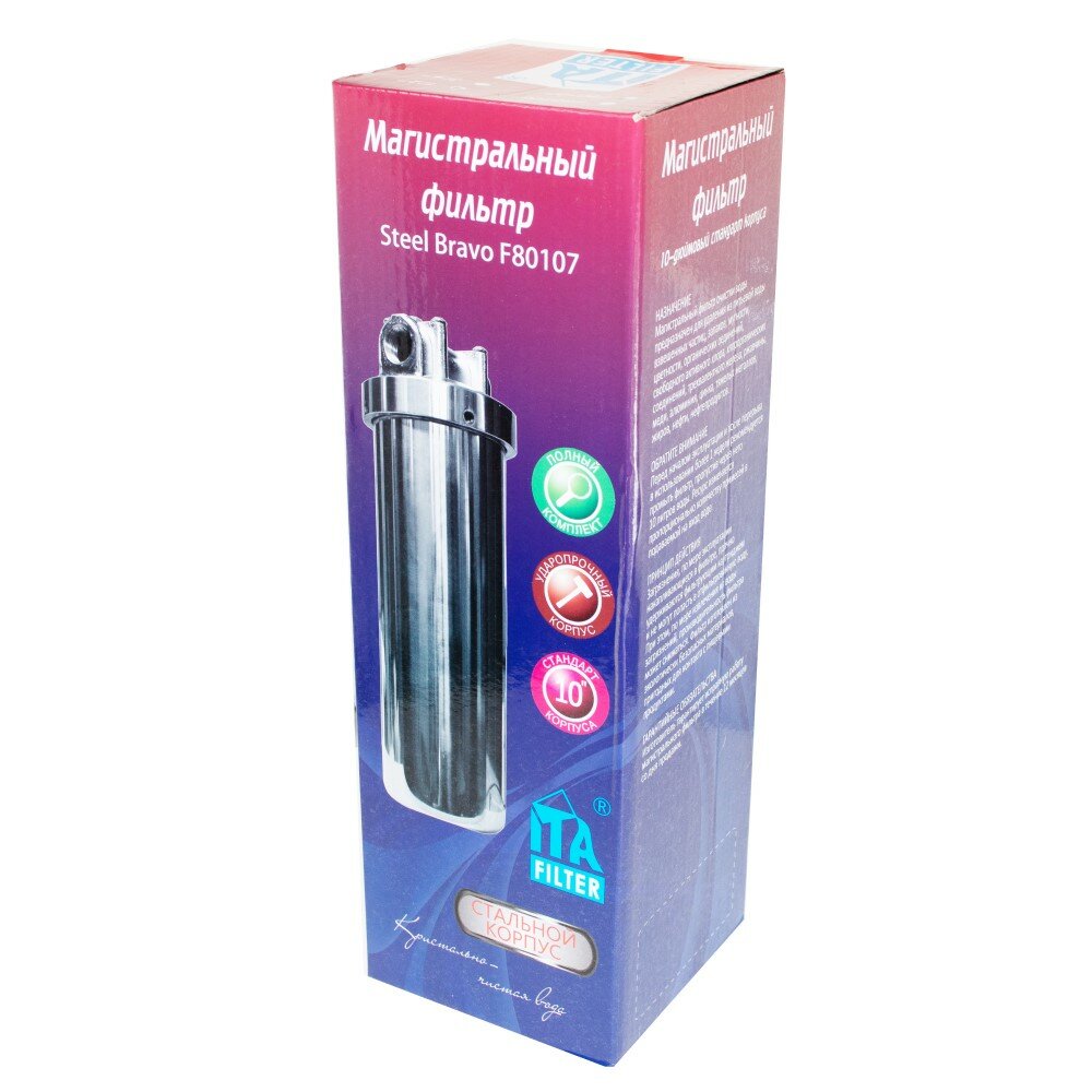 Корпус фильтра без картриджа.ITA Filter Магистральный фильтр STEEL BRAVOСтальной магистральный фильтр для механической очистки горячей или холодной воды от нерастворенных примесей, песка, ила, ржавчины, окалины и т. д.стандартный корпус 10 дюймов. магистральный фильтр для очистки холодной воды, полный комплект для установки и эксплуатации, диаметр резьбы для установки магистрального фильтра.Технические характеристики:Модель STEEL BRAVOРабочая температура до 85 град.Используемый картридж - полиэстр.Давление воды - до 0,8 МПа.Производительность - до 15 л./мин.Фильтры ИТА Фильтр застрахованы в Росгосстрах«ита-фильтр» принимает на себя обязательства перед потребителями за реализуемый товар, так как мы уверены в высоком качестве продукции. Страхование ответственности – гарантия для наших покупателей!Картриджи механической очистки 10" для данного магистрального фильтра