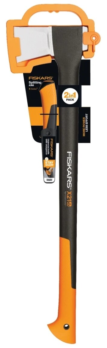 | Комплектация | Топор-колун Fiskars L, X21 - 1 шт. Универсальный нож с точилкой Fiskars - 1 шт. Упаковка |