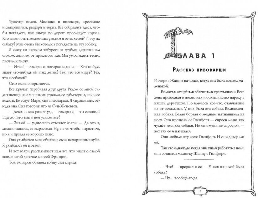 1242 год. В трактире "Святой перекресток" собрались мясники и трубадуры, крестьяне и монахи, рыцари и чернь. На дворе ночь. Такая ночь словно создана для того, чтобы рассказать историю. Каждый хочет услышать историю Жанны, Вильяма, Якоба и Гвенфорт, святой собаки. Историю об их удивительных способностях, о том, как они отчаянно боролись с демонами и драконами, злыми рыцарями и неправдой. О том, как они неожиданно удостоились чести пировать за одним столом с королем, а потом разом попали в немилость. Что же случилось? И что ждет этих детей и их собаку?