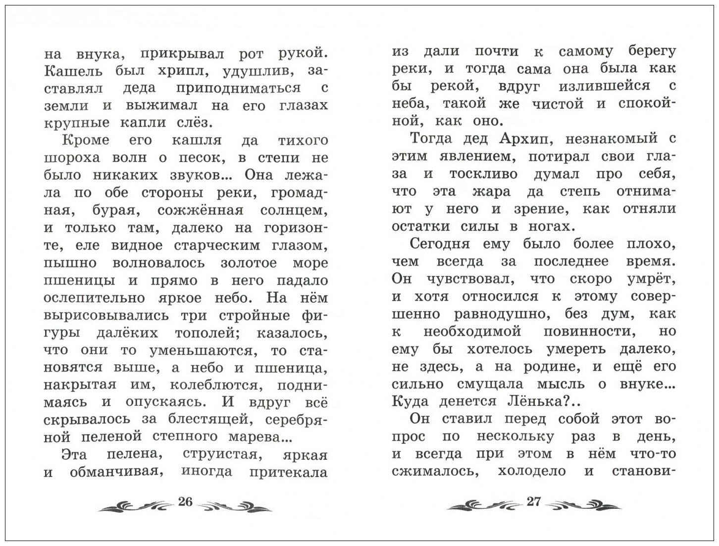Книга из серии «Школьная программа по чтению» размером примерно со школьную тетрадь, только поуже. Обложка из мелованной бумаги, цветная глянцевая, на обратной стороне которой – информация о книгах, вышедших в данной серии. Всего в книге 79 страниц, страницы белые тонкие, просвечивает текст с другой стороны. В книге 2 рассказа Максима Горького: «Встряска» и «Дед Архип и Ленька». Содержание – в начале книги. Книга рекомендована для детей младшего школьного возраста, подойдет для самостоятельного чтения. Шрифт крупный, есть переносы слов, буква "ё", сноски с комментариями, поясняющие некоторые понятия, слова. Сноски расположены внизу страницы, напечатаны более мелким шрифтом. Рисунков нет. Тексты произведений напечатаны без сокращений.