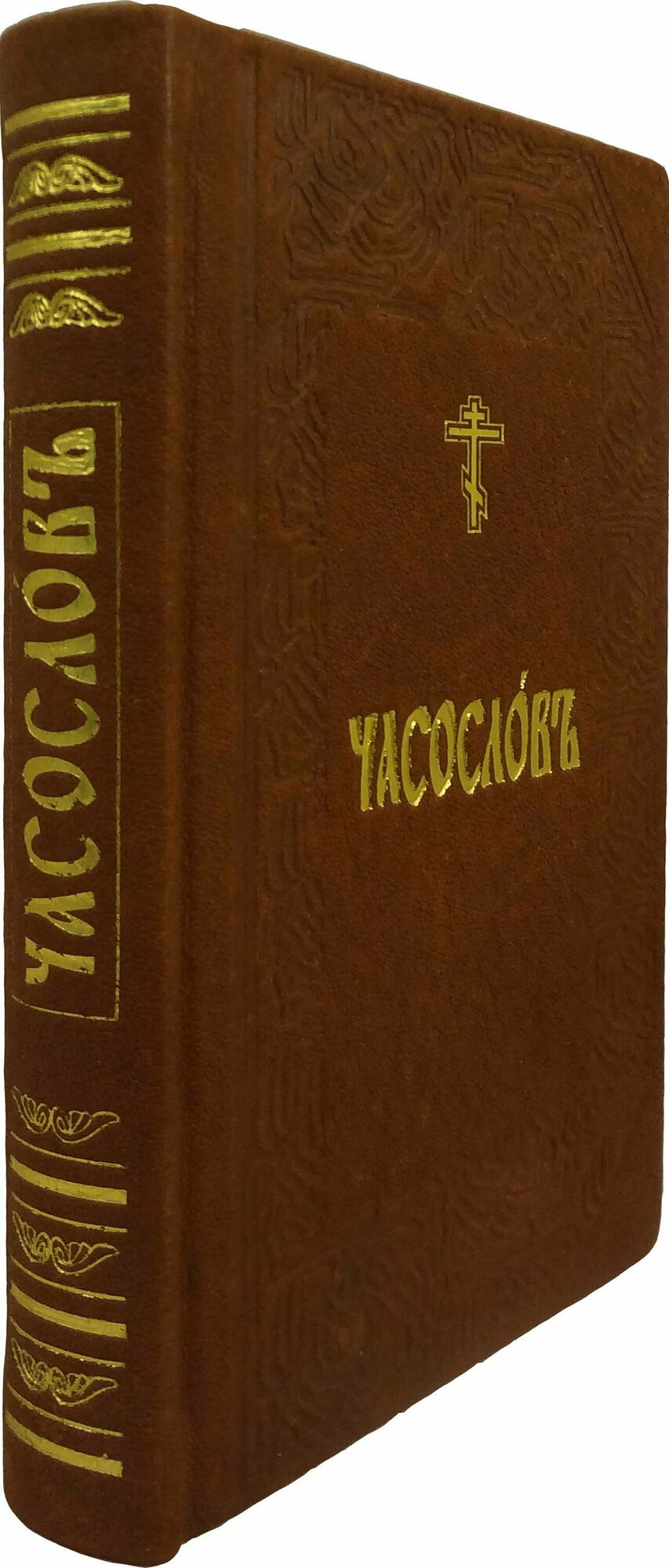 Богослужебное издание. Часослов на церковнославянском языке. Двухцветная печать. Две шелковые закладки-ляссе. Дополняет книгу раздел, содержащий тропари, поемые на молебнах, тропари и кондаки святым, тропари и кондаки воскресные восьми гласов и другие молитвословия гражданским (русским) шрифтом.