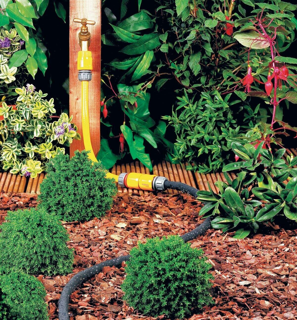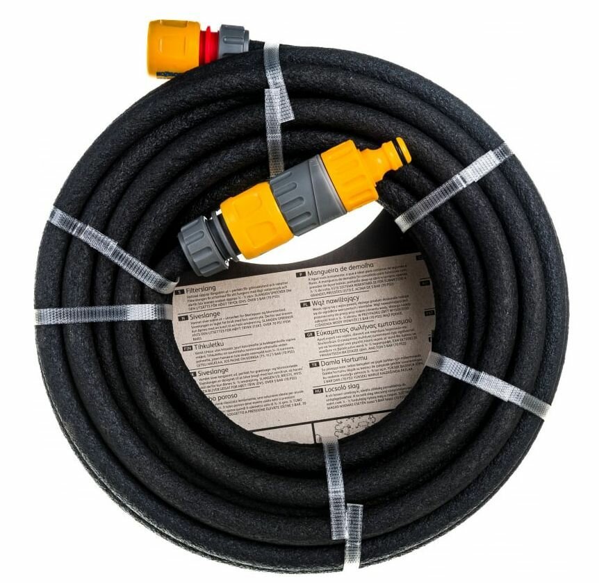 Через поры в шланге вода просачивается без разбрызгивания, что позволяет Вам удобно проложить шланг вдоль грядок для полива молодых растений, овощей и парниковых культур или вдоль изгороди для полива маленьких кустарников и цветов.