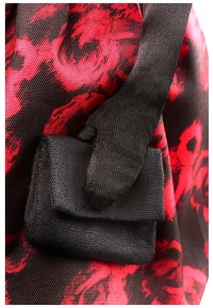 На ней надето черное платье с красными розами, высокие черные перчатки, черные сетчатые колготки, черная шляпа с широкими полями. Образ дополняют черные туфельки и сумочка, а также массивные серьги.