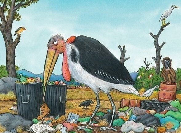 Вот утро в саванне. Здесь очень красиво. Какие величественные, гордые животные - слон, носорог, буйвол, леопард. Царственный лев. Не звери, а чудо! Люди зовут их "большой пятёркой". …А это откуда? Ах, да - это бородавочник, гриф, гиена, марабу и антилопа гну. Люди зовут их "безобразной пятёркой". Но правда ли они так гадки, как о них говорят?
